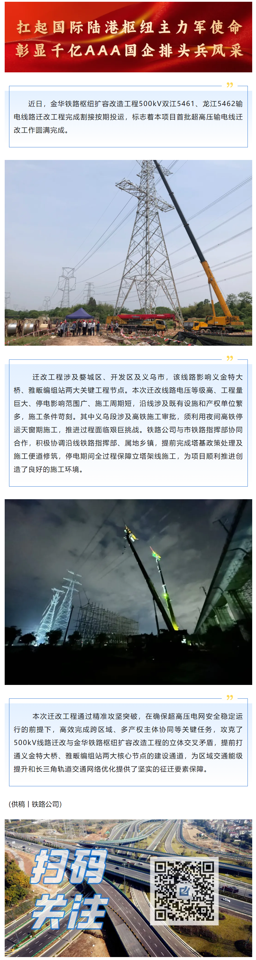 奮進2025丨金華鐵路樞紐擴容改造工程首批500kV超高壓輸電線路順利完成遷改